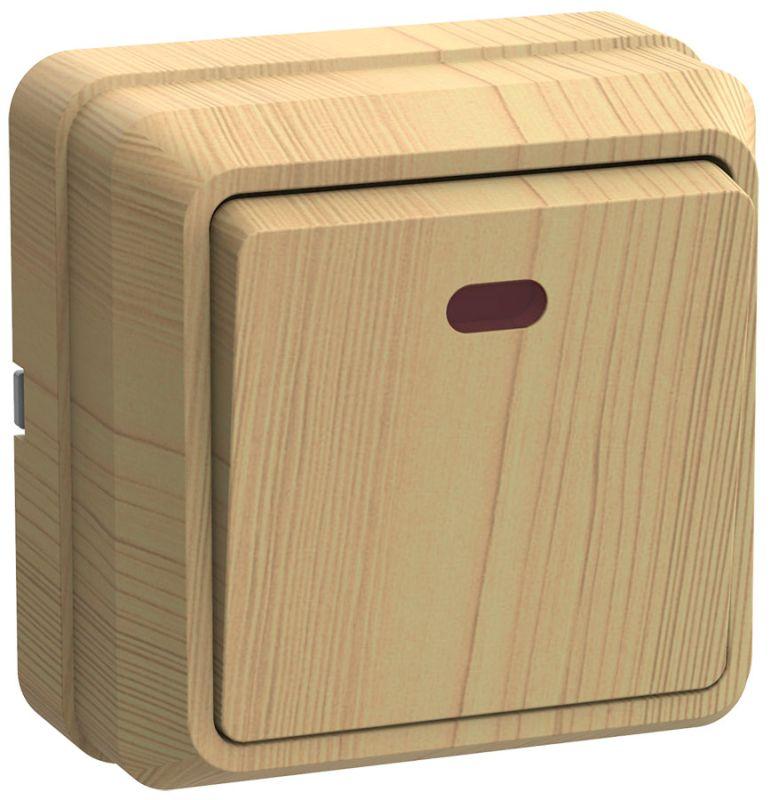 Выключатель 1-кл. ОП Этюд Дача 10А IP20 с подсветкой сосна SE BA10-005D