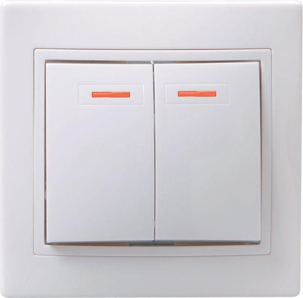 Выключатель двухклавишный ABB BASIC 55, светодиодная подсветка, слоновая кость, тип 2CKA001012A2157